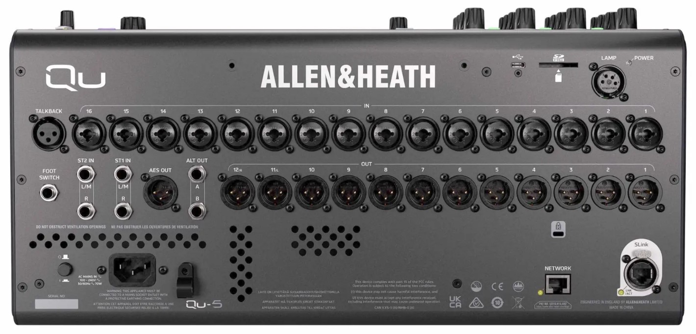 - 38 inputs for mixing (32 mono, 2 stereo, USB)