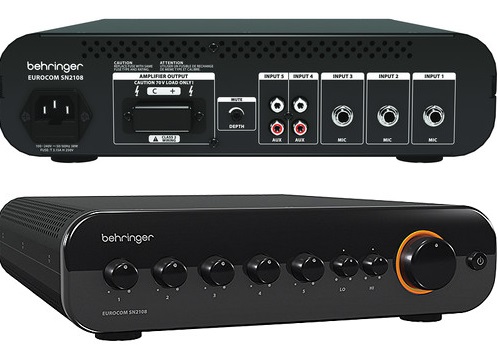 Eurocom SN2108 80-Watt Mixer và Amply với Đầu ra 70-Volt từ Behringer là một mixer đa chức năng và bộ khuếch đại Class-D không cần biến áp được thiết kế để sử dụng cho hoạt động liên tục trong các ứng dụng âm nhạc phân phối, nhắn tin và AV. Nó có thể được sử dụng trong các môi trường bán lẻ, khách sạn, văn phòng, y tế, giáo dục và công nghiệp. Nó có ba đầu vào TRS 1/4" chấp nhận cả tín hiệu cân bằng và không cân bằng. Nó cũng có hai đầu vào phụ RCA tổng hợp âm thanh nổi có thể cung cấp khả năng phát lại từ các nguồn bên ngoài như máy nghe nhạc CD hoặc MP3, radio hoặc bộ dò sóng truyền hình. Thiết bị có đầu ra loa dải đầu cuối 70 volt, hai vị trí.