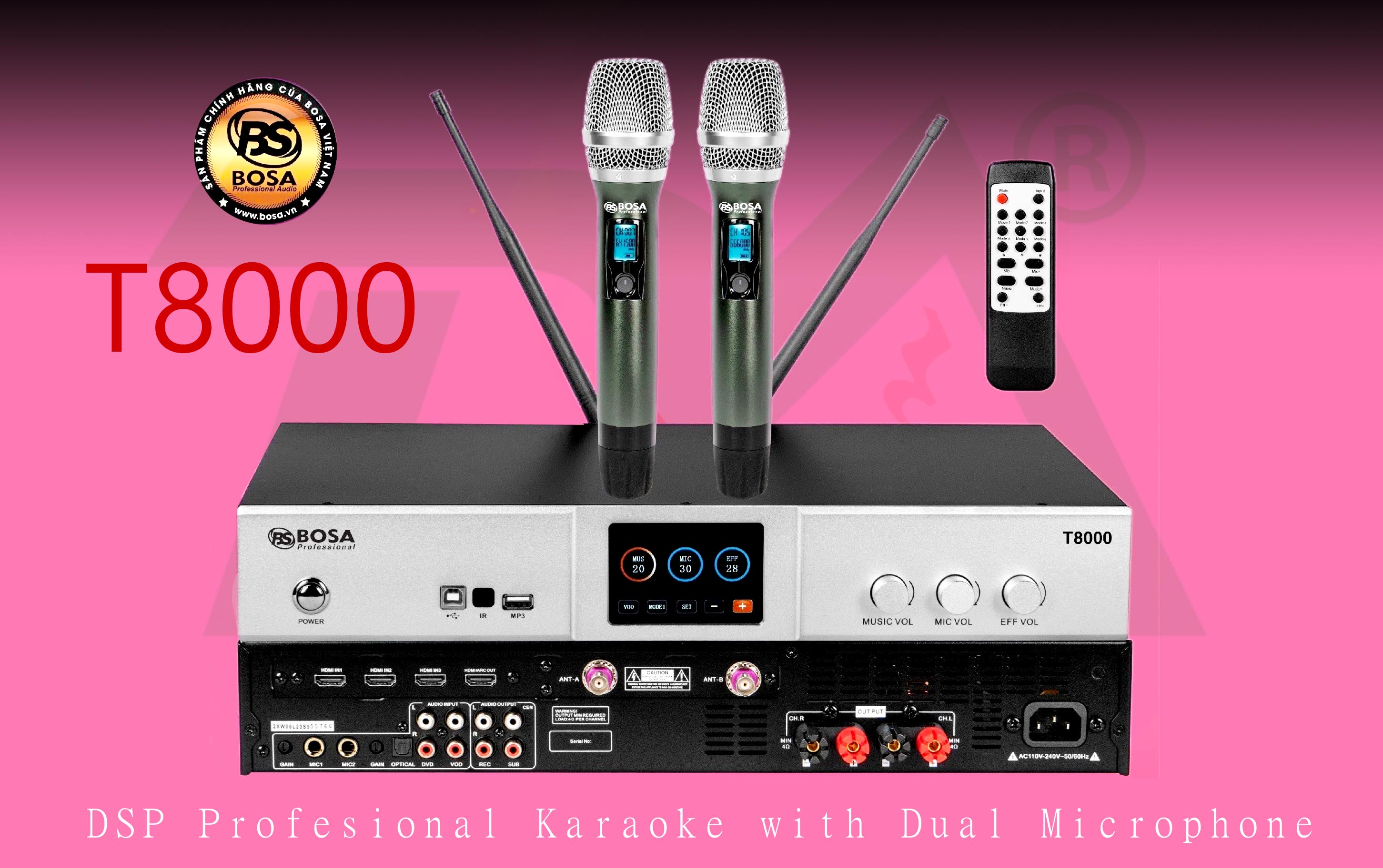 Bosa T8000 có nhiều chức năng nổi bật cho tiếng ra trong trẻo kết hợp với board chống hú cao cấp giảm thiểu tiếng hú rít khi phối hợp với loa kém chất lượng với thiết kế nhỏ gọn, bắt mắt và sang trọng, còn chất lượng cao cấp mang lại sự hài lòng nhất cho mọi khách hàng.