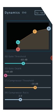 8 Band EQ, dbx AFS, Gate & Compressor per channel.