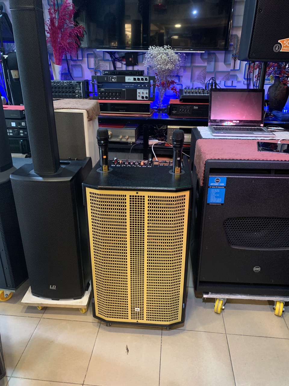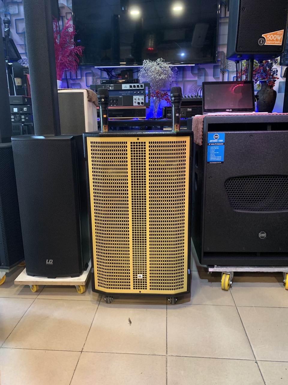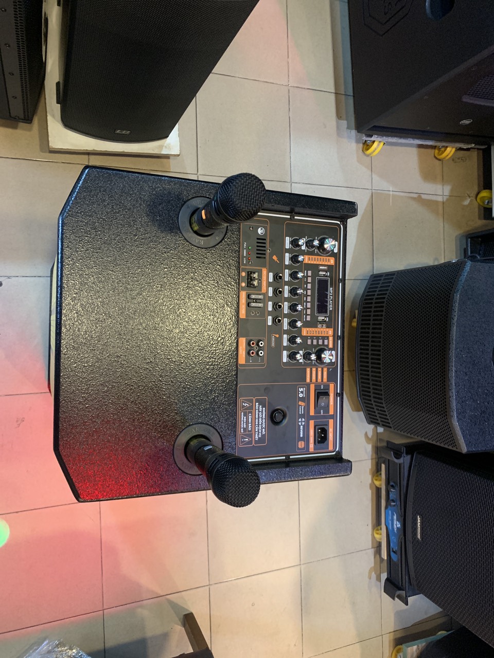 Bình điện:12V-15A thời gian sử dụng 4-5h và cho chất lượng âm thanh mạnh mẽ.