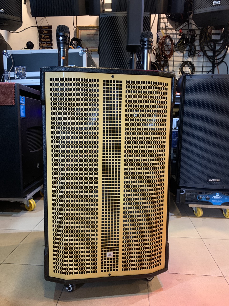 Loa gia công theo đúng kỷ thuật và tính an toàn cao, loa lắp ráp theo cấu hình kỹ thuật âm thanh bass chắc, hát nhẹ, treble thanh hay. Chất liệu củ treble củ bass đảm bảo