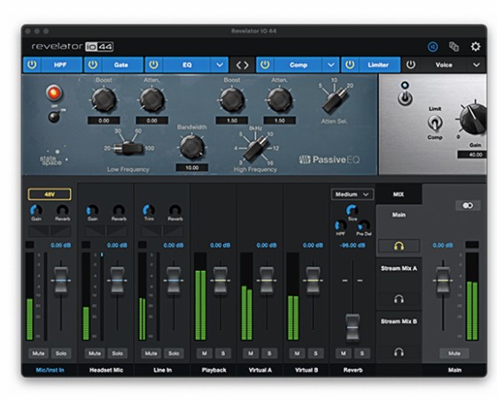 StudioLive fat channel with a high-pass filter, gate, 3 compressors, 3 EQs and limiter