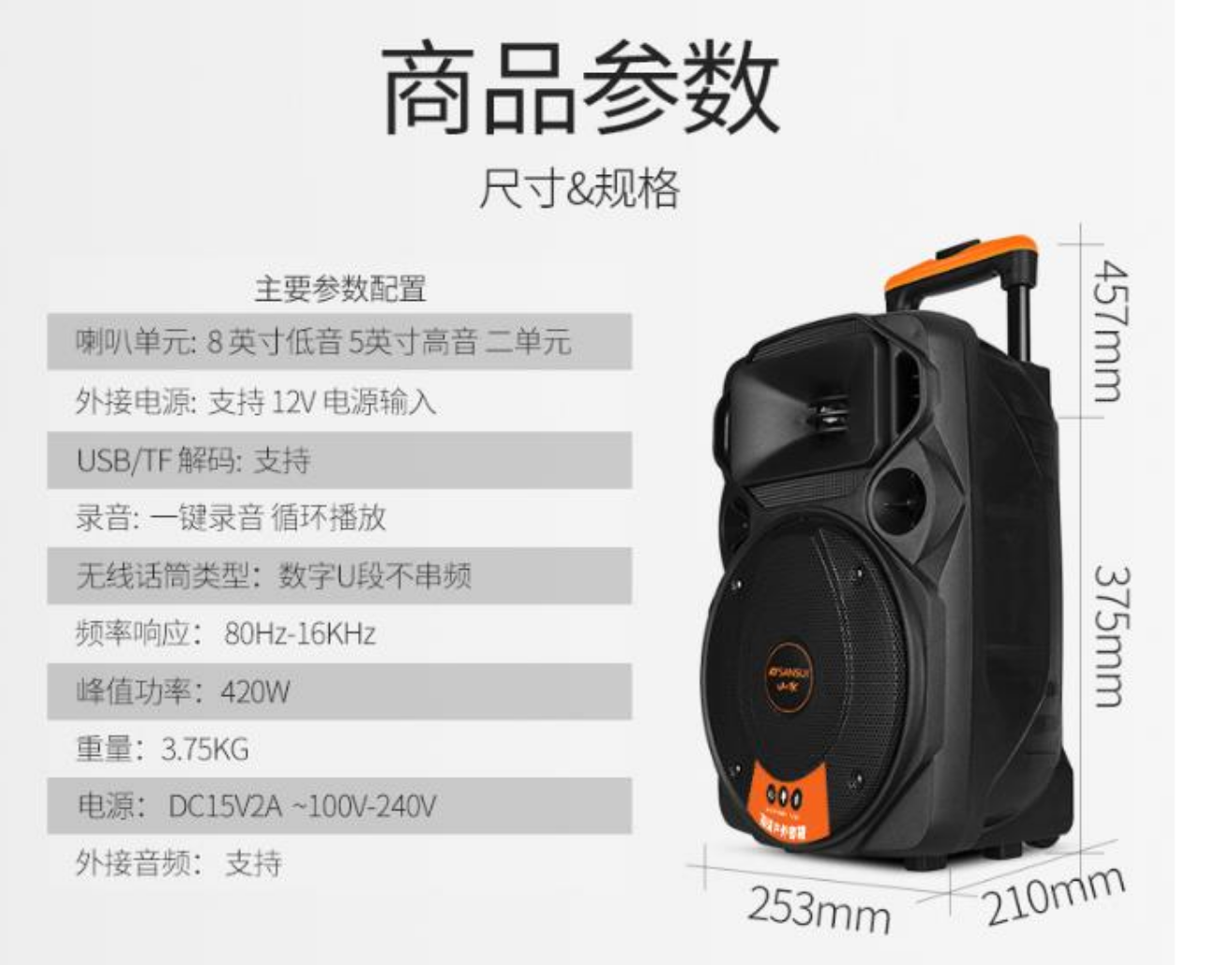 SANSUI MK15-8 Portable Speaker 8" Wireless Bluetooth Speaker With 2 Wireless Microphone, USB, TF Card