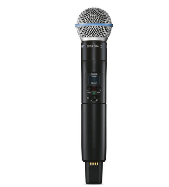 - Handheld transmitter with dynamic Beta58A microphone capsule