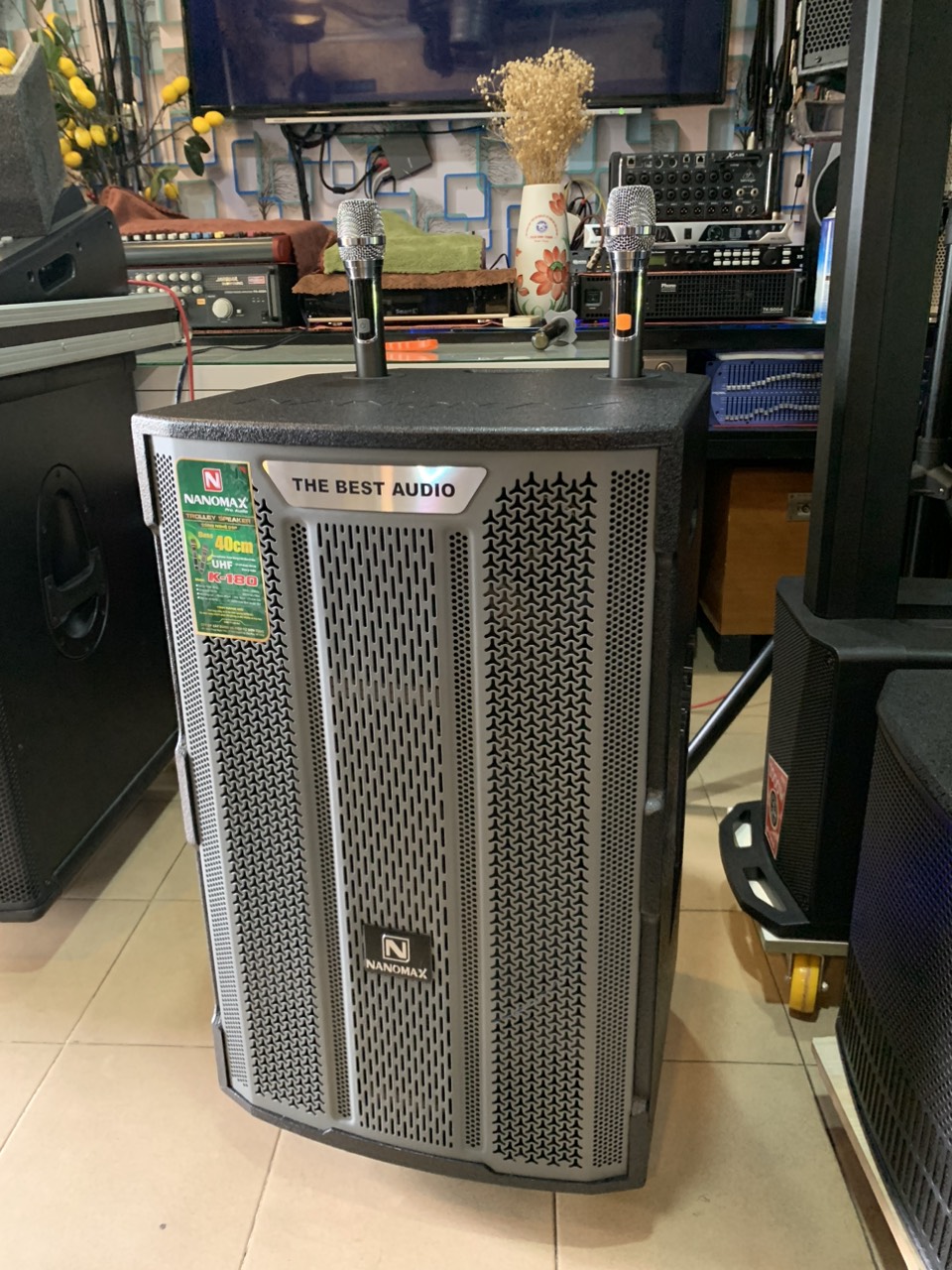 Loại loa karaoke di động có bánh xe và tay kéo kết nối bluetooth hát karaoke chất liệu vỏ thùng loa: thùng gỗ chuyên nghiệp
